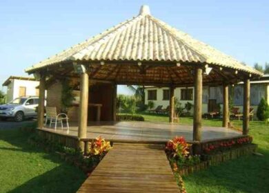 Quiosques para chácaras são estruturas externas que oferecem um espaço agradável para desfrutar do ar livre e do convívio com a natureza. Eles são geralmente construídos com materiais resistentes e duráveis, como madeira, alvenaria, bambu e metal, e podem ser personalizados de acordo com as necessidades e gostos do proprietário.